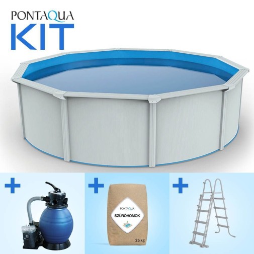 Pontaqua Family Pool KIT WHITE kerek fémfalas családi medence szett 360 x 120 cm