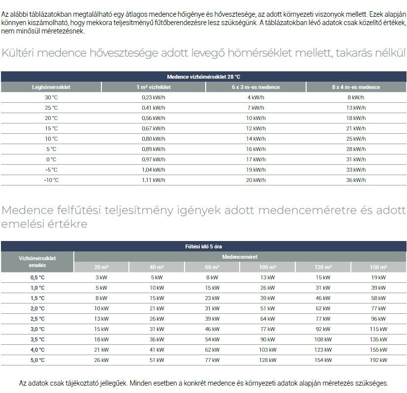 *Az ajánlott medence méret adatok nyári szezonra vonatkoznak. Szezonon kívüli használat igénye esetén méretezés szükséges!