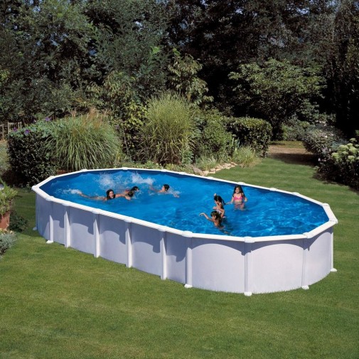 vizuális jellemzők Ovális medence, fehér acél fallal