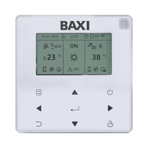a Baxi Auriga A vezetékes vezérlőegység a BAXI Auriga A monoblokk rendszerű levegő-víz hőszivattyúk kötelező tartozéka.