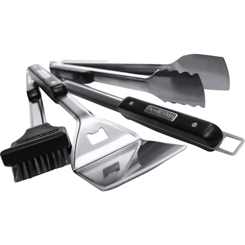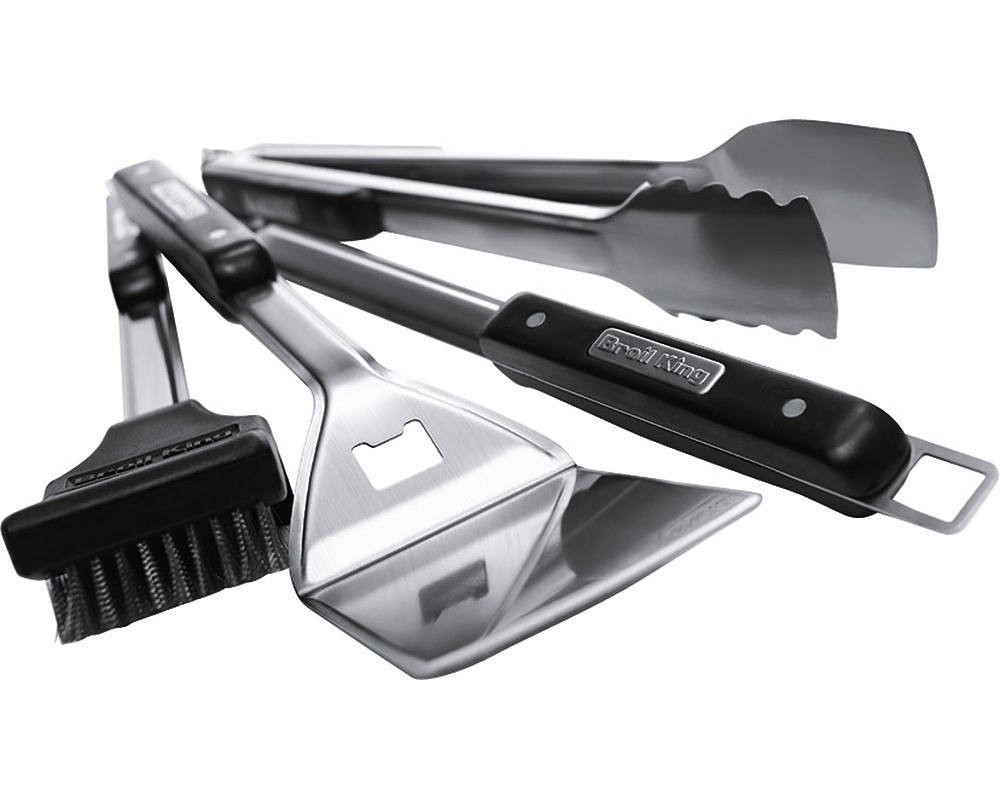 A Broil King négy darabos grillszettje nemcsak elegáns megjelenésének, hanem kiváló és tartósságot ígérő anyaghasználatának köszönhetően is esélyesen pályázik minden grillezni szerető figyelmére. A sokoldalúságot szem előtt tartva állították össze a négy darabot számláló csomagot, mellyel tökéletesen le lehet fedni minden munkafolyamatot. A szett tartalmaz egy szószok, pácok felvételére alkalmas szilikon ecsetet, egy beépített sörnyitóval ellátott spatulát, amivel egyszerű még a hatalmas sztékek forgatása, mozgatása is, egy húsfogót, ami egyaránt alklamas húsok, zöldségek és sajtok kezelésére, és végül egy tisztítókefét. Így ezzel a négy rozsdamentes eszközzel a pácolástól a sütésen át a grill használata utáni tisztításig mindent elvégezhetsz, gyorsan és hatékonyan. Mind a négy darab saját akasztóval rendelkezik, amely a legtöbb Broil King grillel kompatibilis és könnyen tisztíthatóak, hogy a sütés utáni rendrakás se legyen rémálom. A szilikonecset feje egy mozdulattal eltávolítható és akár mosogatógépben is elmosható, hogy könnyebben megszabadulhass a zsíros pácok anyagától.