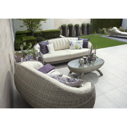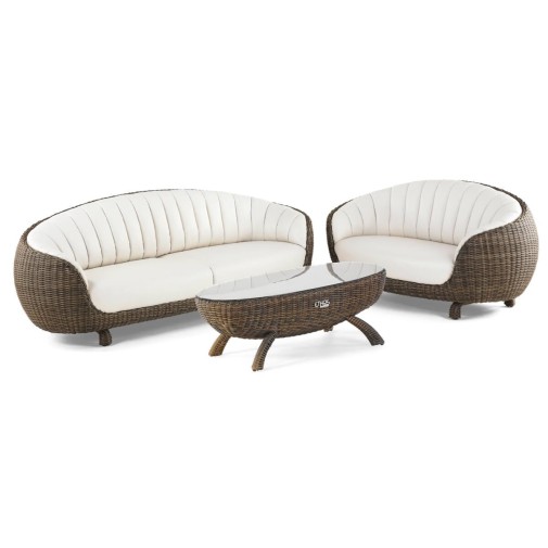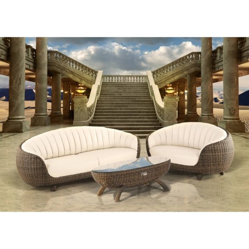 A Coool két személyes szófa olyan, mint a kagylóba zárt gyöngyszem. Különleges formavilága valóban egy kagylót idéz, minőségi anyagai, részletgazdag kidolgozása teszik terasza gyöngyszemévé.