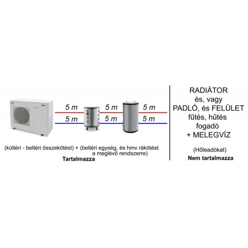 – 1 csomag fűtési szerelés 10 m csőszakasszal (a jelenlegi hálózatra telepítés).