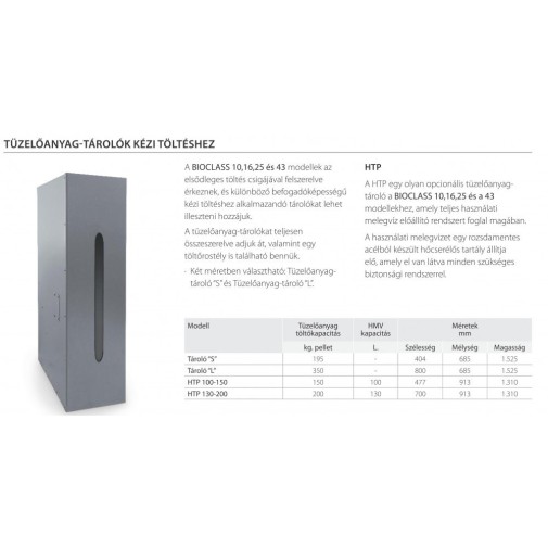 Domusa BC-L 350 kg-os tüzelőanyag tartály BioClass 10, 16, 25, 43 kW-os kazánhoz.
