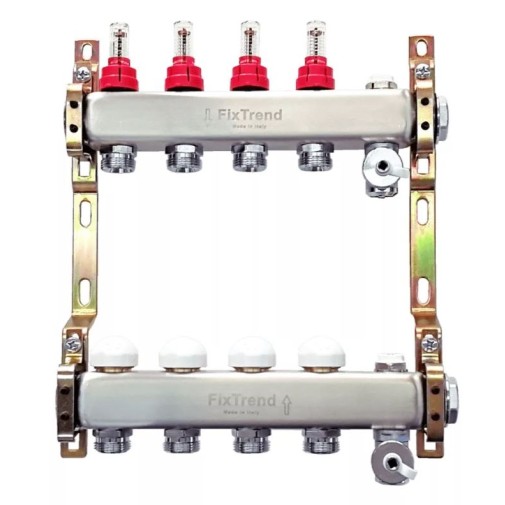 A Fixtrend inox osztó-gyűjtőket a hőátadó folyadék, fűtési és hűtési rendszerekben való elosztására és szabályozására tervezték. Rozsdamentes acélból készülnek, ideálisak felület fűtési rendszerekhez, vagy akár hagyományos radiátoros fűtési rendszerekhez is. Az osztó-gyűjtők egyedi kialakítása nagyszerű áramlási tereket biztosít, amely alacsonyabb nyomáseséssel jár és ennek következtében alacsonyabb az energiafogyasztás a keringető szivattyúkban. Az osztók nagy áramlási tere lehetővé teszi a víz sebességének csökkentését, ami nagyon alacsony zaj szintet eredményez. Esztétikus megjelenésűek, erősek, megbízhatók és korrózióállók a szokásos alkalmazásokban. Az osztó-gyűjtők konzolra szerelve, előre meghatározott körszámra vannak kialakítva, a fűtőkörök csatlakozásai ¾” -os eurokónuszos kialakításúak, csonktávolságuk 50 mm, az osztó áramlás mérővel ellátott szabályzó szeleppel, a gyűjtő elektromos működtető fogadására alkalmas szeleppel van ellátva. Az osztó és a gyűjtő is kézi légtelenítő szeleppel és töltő - ürítő csappal van ellátva, és mindkettőnek tartozéka egy végelzáró dugó.