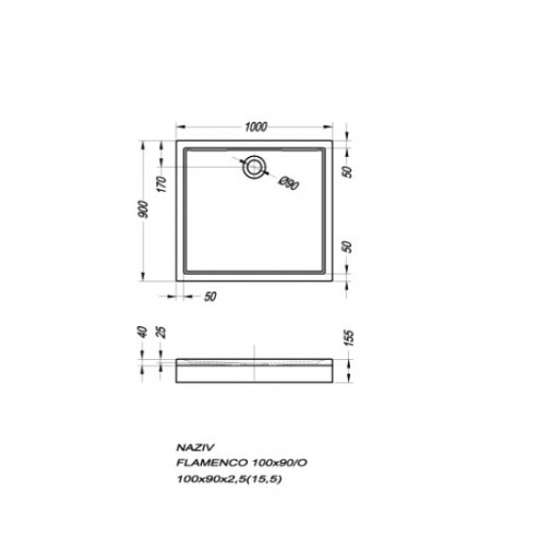 Flamenco 100x90 beépíthető akril szögletes zuhanytálca.