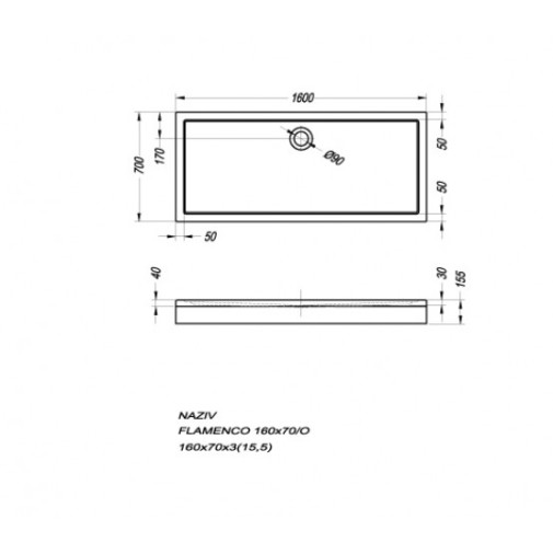 Flamenco 160x90 akril szögletes zuhanytálca.