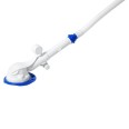 A tisztító csendben üzemel, gyorsan megtisztítva a medencét.
