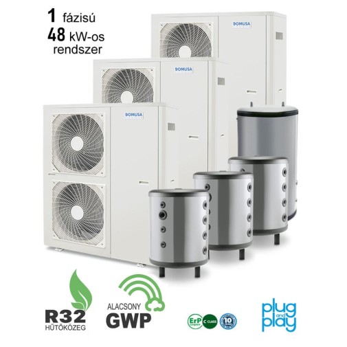DOMUSA - 48 kW-os 1 fázisú Levegő-Víz hőszivattyús rendszer fűtés, hűtés, és használati melegvíz ellátásra komplett beüzemeléssel
