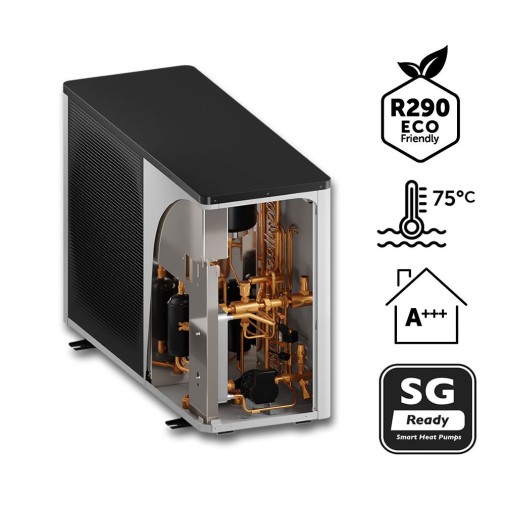 Monoblock technológiájának köszönhetően kedvezőbb áron telepíthető mint egy hagyományos split rendszerű levegő-víz hőszivattyú.