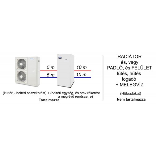 – Az ár tartalmaz anyag, és munkadíj oldalon 10 m csővezetés a beltéri egységek, és a meglévő, vagy kiépített gépészet között, a hozzá tartozó idomok szerelvényekkel (ha nagyobb a csövezési távolság, akkor méterenként 8.500 Ft-al emelkedik a díj pl.: ha 10 méterrel hosszabb akkor 85.000 Ft).