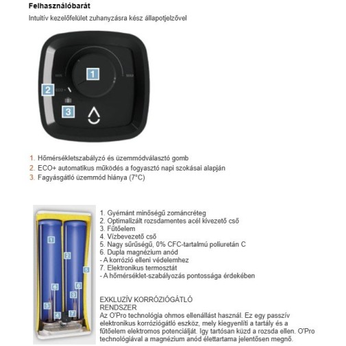 Az O'Pro technológia ohmos ellenállást használ. Ez egy passzív elektronikus korróziógátló eszköz, mely kiegyenlíti a tartály és a fűtőelem elektromos potenciálját. Igy tartósan küzd a rozsda ellen. O'Pro technológiával a magnézium anód élettartama jelentősen megnő.