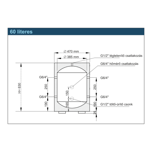 CONCEPT puffertároló, INOX, csőkígyó nélkül, álló/fali, párazárt PUR szigeteléssel, 6/4”, 60 l