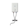 10 literes felső elhelyezésű, szabadkifolyású ("átfolyós": nem kell biztonsági szelep hozzá, a csaptelepen keresztül csöpög ki a táguló víz) vízmelegítő, mini villanybojler, csapteleppel.