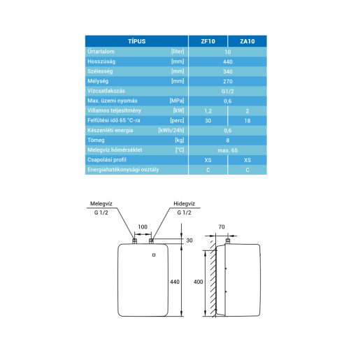 A falra szerelhető, zártrendszerű készülék pult alá szerelhető, alsó elhelyezésü kivitelben készül. Rendeltetése - ürtartalmának megfelelően - kisebb vízigények (konyhai mosogató, hétvégi házak, lakókocsik stb.) vízigényének kielégítése. A típus alkalmasak egyidejűleg több vízvételi hely, illetve zuhanyzós csaptelepek ellátására is, de szabadkifolyású csapteleppel szerelve egy vízvételi helyet ellátó, szabadkifolyású vízmelegítőként is beépíthető. A tárolt melegvíz mind tisztálkodási, mind étkezési célra alkalmas.