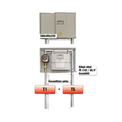 PEO T7 szabályzó és mérőállomás, előkerti, ki:PE32/G5/4”, Gázgép összekötő