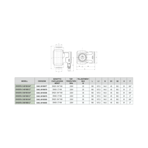 DAB Evosta 3 80/180X (DN32) keringető szivattyú, 180mm, 2”, 230V