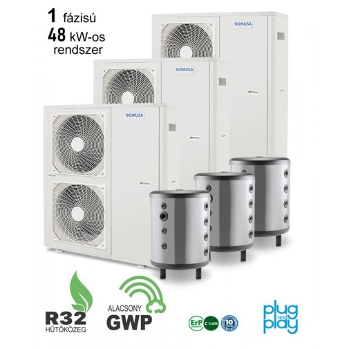 DOMUSA - 48 kW-os 1 fázisú Levegő-Víz hőszivattyús rendszer fűtésre, hűtésre, komplett beüzemeléssel