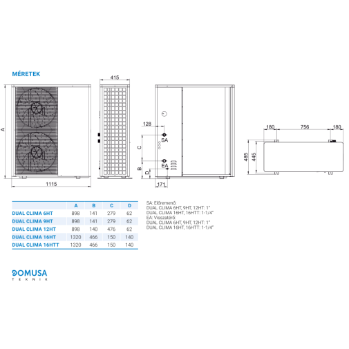 A Domusa DUAL CLIMA R levegő-víz hőszivattyút magas fűtési-hűtési, és használati melegvíz igénybevételre tervezték. A Domusa készülékek egyedisége abban rejlik, hogy kulcsrakész rendszerben kaphatók, és az egyszerű felépítésének úgynevezett Plug-and-Play kialakításának köszönhetően gyerekjáték az üzemeltetésük, és pillanatok alatt telepíthetők bármely új, vagy meglévő fűtési rendszerhez.