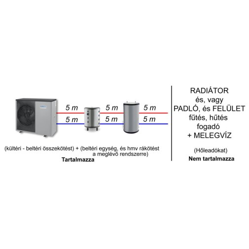 – 1 csomag fűtési szerelés 10 m csőszakasszal (a jelenlegi hálózatra telepítés).