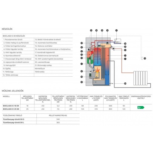 A Domusa BIOCLASS IC DX pellet kazánok ötvözik a gázkazán nyújtotta kényelmet, a fatüzelés adta jó meleggel. Kompaktsága abban rejlik, hogy a kazántestbe integrálva tartalmaz egy saválló használati melegvíz tartályt, amely akár óránkét 800 liter melegvizet is képes szolgáltatni. Ezen kívül egy kisebb puffer tartályt is tartalmaz továbbá minden alkatrészt amely az üzemeltetéshez szükséges (tágulási tartályt, biztonsági szelepet, kazánvédő szelepet, keringtető szivattyút). Csak rá kell kapcsolni a régi, vagy új típusú fűtési rendszerre, és máris biztosítja a fatüzelés kellemes melegét, teljesen automatán!