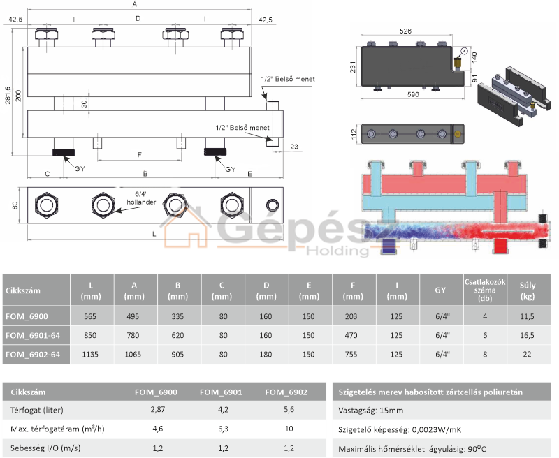 FixTrend Tech Smart 3 körös fűtőköri osztó-gyűjtő és hidraulikus váltó szigeteléssel 6/4”