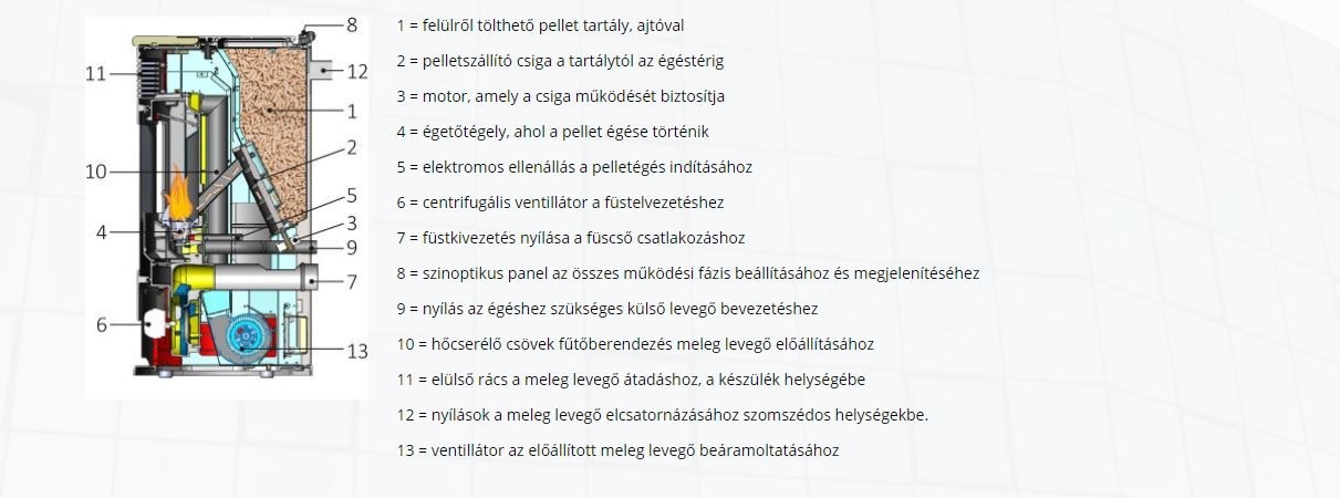 Az Edilkamin pellet kályhák meleg levegőt állítanak elő, amely fűti a kandalló helységét, vagy modelltől függően, akár a szomszédos helységeket is.