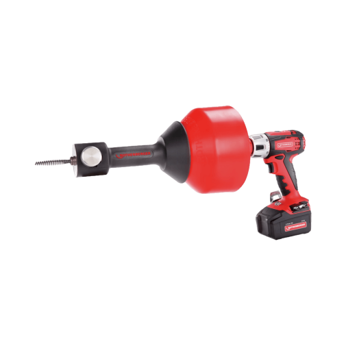 Kézzel vezetett csőtisztító gép automatikus előtolással és hatszögletű befogóval akkumulátoros csavarbehajtóhoz legfeljebb 50 mm átmérőjű csatlakozócsövek dugulásainak eltávolításához.