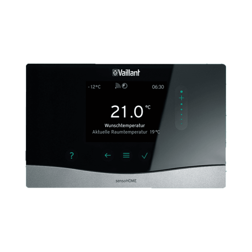 A modulációs égőműködés támogatására képes helyiségtermosztát vezeték nélküli kivitelben is kapható, így utólagos használata során nincs szükség elektromos vezetékek behúzására. Ennek köszönhetően kivitelezési költség takarítható meg, az elmaradó vésési és helyreállítási munkálatokról nem is beszélve. Ezen kívül a sensoHOME időjáráskövető szabályozóvá is fejleszthető, amennyiben a megfelelő külső hőfokérzékelő csatlakozik az eBUS kommunikációra képes gázkészülékhez.