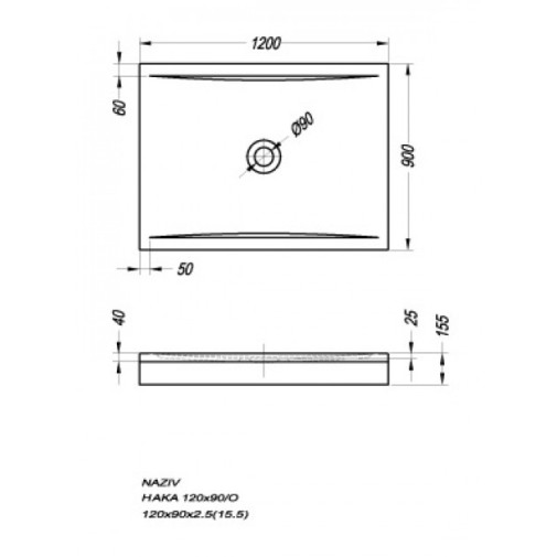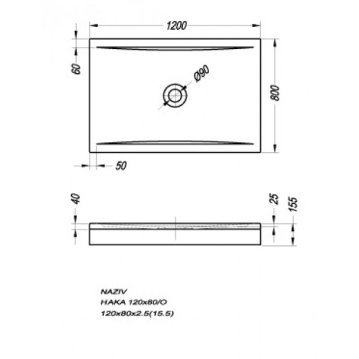 Haka 120x80 beépíthető akril szögletes zuhanytálca.