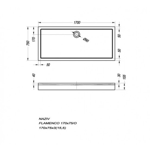 Flamenco 170x80/O akril előlapos szögletes zuhanytálca.