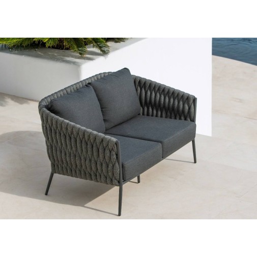 A Jati & Kebon Fortuna 2 személyes kanapé alumínium váza ellenáll az időjárás viszontagságainak. UV álló, szürke vastag textil fonású támlája teszi igazán izgalmassá, vízlepergető párnával rendelhető.