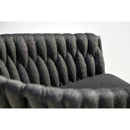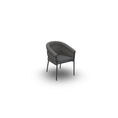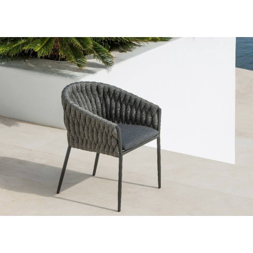 A Jati & Kebon Fortuna étkező karosszék alumínium váza ellenáll az időjárás viszontagságainak. UV álló, szürke vastag textil fonású támlája teszi igazán izgalmassá, vízlepergető párnával készül.