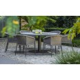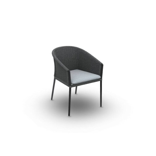 A Jati & Kebon Fortuna étkező karosszék alumínium váza ellenáll az időjárás viszontagságainak. UV álló, szürke textil fonású támlája teszi igazán izgalmassá, vízlepergető párnával készül.