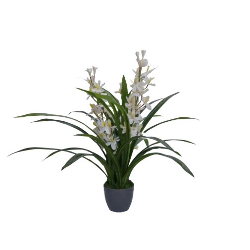 Időtlen elegancia egy orchidea műnövénnyel. Fehér virágai és élethű zöld levelei azonnal luxusérzetet adnak bármely helyiségnek. Tökéletes választás, ha eleganciát és kifinomultságot szeretnél hozzáadni az enteriőrödhöz, gondozás nélkül.
