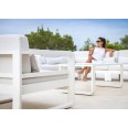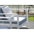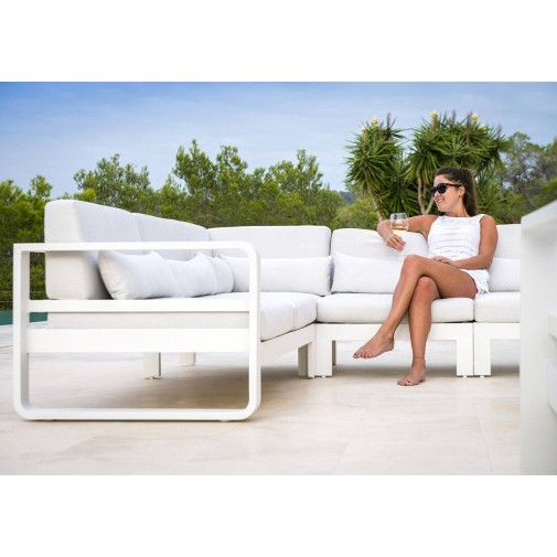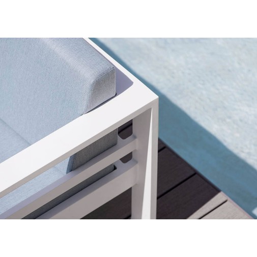 A belga gyártó szakemberei természetesen a design mellett arra is nagy gondot fordítottak, hogy a kültéri használatra szánt bútor valóban alkalmas legyen ellenállni az időjárási viszontagságoknak, s hosszú éveken át kifogástalan kényelmet biztosítson. Ennek érdekében a párnák például a különleges Sunbrella anyagból készültek: a kiváló minőségű kültéri szöveteket készítő Sunbrella a gyártás során színes festékpigmentekkel itatja át a pamut szálakat, majd egy folyékony akril bevonattal vonja be a szövetet. A speciális eljárás a szálak belsejébe zárja a színt, így az anyag nem fakul, UV és vízálló lesz. Ráadásul a párnák tisztítása is gyerekjáték: a legtöbb szennyeződés egyszerű szappanos vízzel eltávolítható.