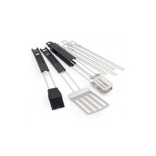 A Broil King hét darabos grillszettje nemcsak elegáns megjelenésének, hanem kiváló és tartósságot ígérő anyaghasználatának köszönhetően is esélyesen pályázik minden grillezni szerető figyelmére. A sokoldalúságot szem előtt tartva állították össze a négy darabot számláló csomagot, mellyel tökéletesen le lehet fedni minden munkafolyamatot. A szett tartalmaz egy szószok, pácok felvételére alkalmas szilikon ecsetet, egy grill lapátot, egy húsfogót, ami egyaránt alklamas húsok, zöldségek és sajtok kezelésére, és végül 4 db rozsdamentes acél nyársat. Így ezzel a hét rozsdamentes eszközzel a pácolástól a sütésen át a grill használata utáni tisztításig mindent elvégezhetsz, gyorsan és hatékonyan. Mind a négy darab saját akasztóval rendelkezik, amely a legtöbb Broil King grillel kompatibilis és könnyen tisztíthatóak, hogy a sütés utáni rendrakás se legyen rémálom. A szilikonecset feje egy mozdulattal eltávolítható és akár mosogatógépben is elmosható, hogy könnyebben megszabadulhass a zsíros pácok anyagától.