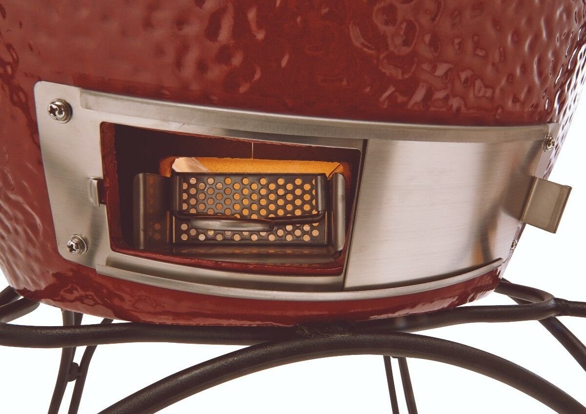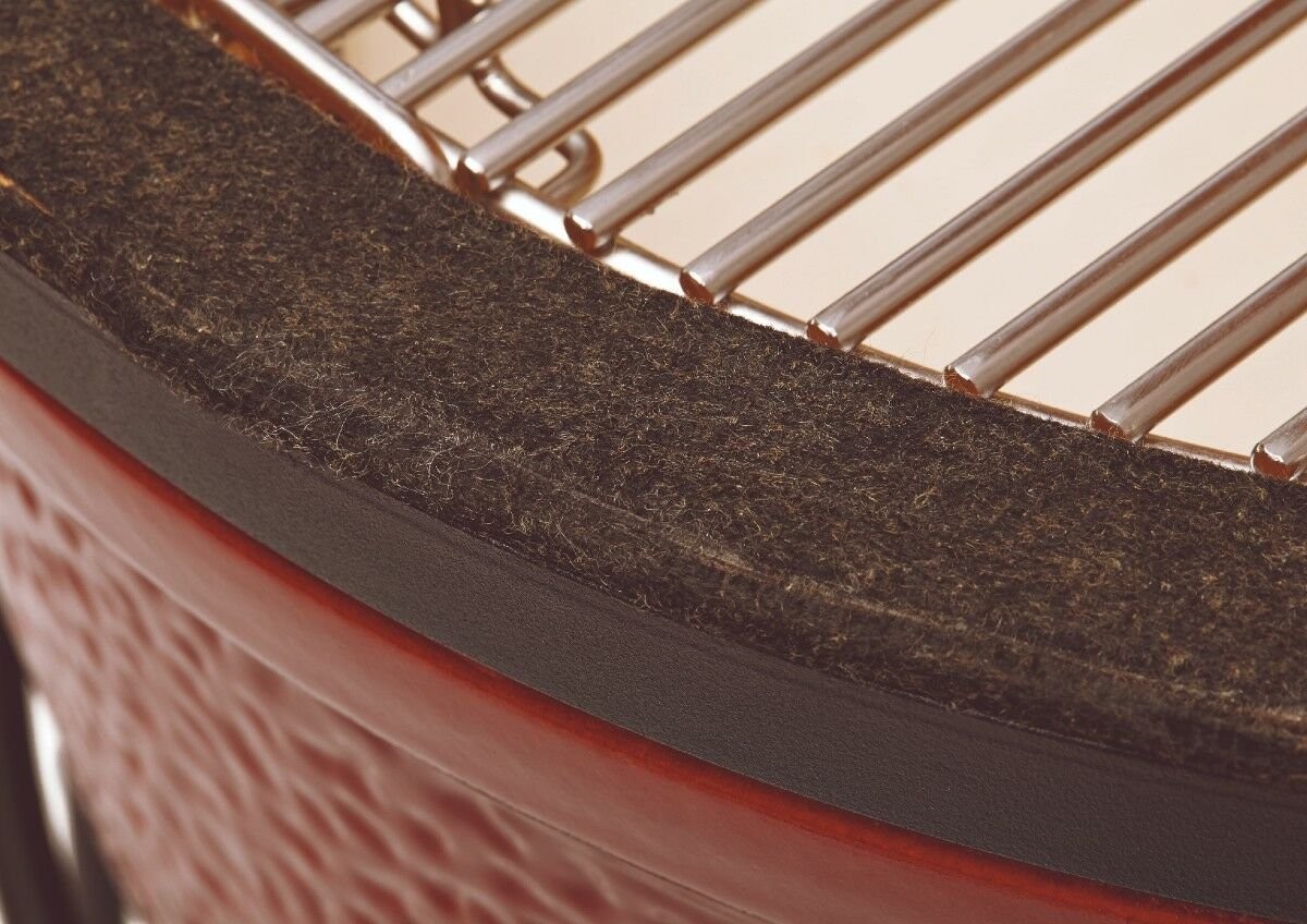 Kiváló minőségű kerámiából készült, mely különösen jól tartja a hőt. A több darabból álló AMP tűztere pedig ellenáll a hőtágulásnak(ezáltal a repedéseknek) és nagyszerű légáramlást biztosít a sütőnkben. Ezen felül a könnyen nyitható fedél alatt egy multifunkciós(Divide & Conquer®) sütő rendszer, két darab félhold alakú deflektorkő és grill rostély(46 cm) biztosítja a tökéletes sütési élményünket.