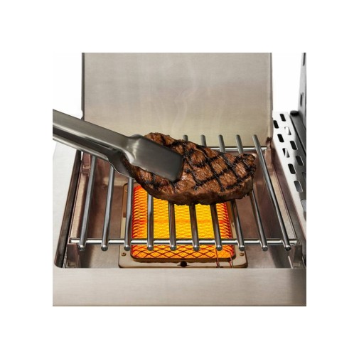 Az infravörös égő úgy van tervezve, hogy a gázlángot a több ezer mikroszkopikus lyukból álló kerámiacsempére irányítsa. Ez a láng hőjét infravörös energiává alakítja, állandó, egyenletes hőt biztosítva a teljes felületen. A hagyományos gázégők az égőt körülvevő levegőt hevítik fel az égéssel, amely felemelkedik a sütési felületig. Az infravörös égők közvetlen hője ezzel ellentétben nagyobb intenzitással sugárzik a sütési felületre, így a hagyományos gázégőkénél magasabb grillezési hőmérsékleteket tesz lehetővé.