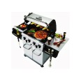 A Regal 400-as szériájának legnagyobb gázgrillje nem is annyira méretével, mint inkább minőségi felszereltségével hódít. Bár a 68 x 49 cm-es sütőfelület, az oldalégő és a nyárson sütő szett is rengeteg lehetőséget rejt magában, mégis az ezt keretbe foglaló rozsdamentes acél szerkezet, a tartós és könnyen használható porcelán bevonatos melegítő, a rozsdamentes acél rácsok és az egyenletes hőeloszlást nyújtó, erős Dual-Tube™ égők jelentik a Regal 490 Pro lelkét. Méretében és konstrukciójában az Imperial 490-re hasonlít a gázgrill, de ez porcelán bevonatos öntöttvas rácsokkal és a gázcserét megkönnyítő kihúzható tárolórésszel érkezik. A négy égővel, oldal és rotiserrie égővel felszerelt grillt a teljesen zárt raktér, a könnyű hőfokbeállítás, a kiváló hőtartó képesség és a gyors begyújtást lehetővé tevő Sure-Lite™ rendszer teszi teljessé. A minőségi alapanyagokból gyártott Regal 490 Pro 10 éves égő garanciával kapható, míg a többi alkatrészhez és a festéshez két éves garancia jár. Ajánlott gázpalack: szabvány 11 kg-os töltősúlyú, 300 mm átmérőjű, PB gázpalack, mely praktikusan elhelyezhető az alsó „szekrényben”.