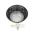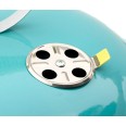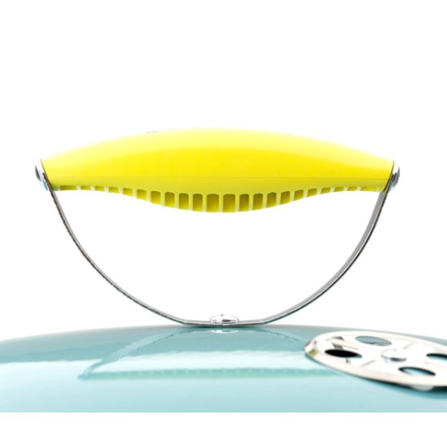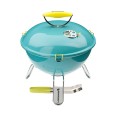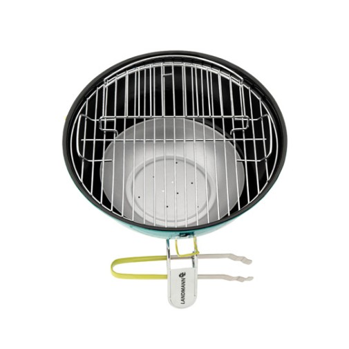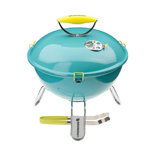 Asztali gömbgrill vonzó türkiz színben.