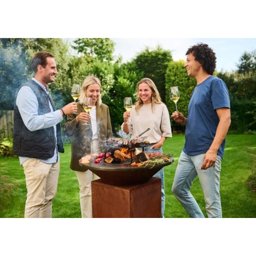 Az OFYR 75 Corten az OFYR kollekció belépő szintű modellje. Praktikus, kompakt kialakítása révén tökéletesen illeszkedik bármilyen kertbe vagy teraszra. Ez a főzőegység innovatív légáramlási lappal rendelkezik, amely javítja a fa égését és korlátozza a füstképződést. Az OFYR 75 Corten 4-6 fő kiszolgálására alkalmas, így ideális kisebb családi összejövetelekhez és mindennapi főzéshez.