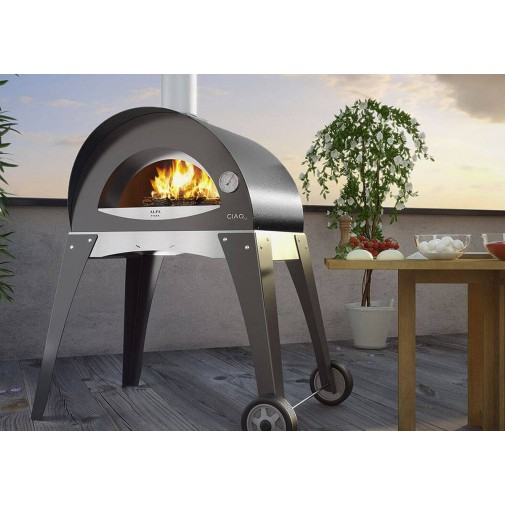 Szállításkor az Alfa Forni Ciao kemence használatra kész: Önnek csak annyi dolga van, hogy behelyezze füstcsövet, becsavarja a lábakat és a kerekeket.