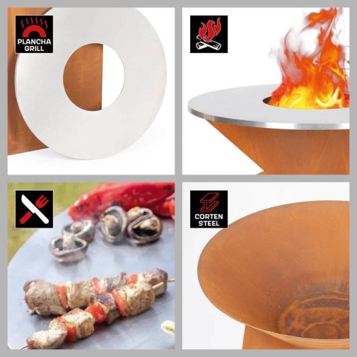 tűztál kiváló minőségű kerettel, időjárásálló Corten acélból