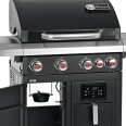 De a lényeg, hogy a gázgrill beépített, 3 literes, LED-kijelzővel ellátott forrólevegős sütővel rendelkezik, így ropogós nuggetseket, chipseket vagy burgonyaszeleteket adhat a grill menüjéhez – gyakorlatilag olaj nélkül.