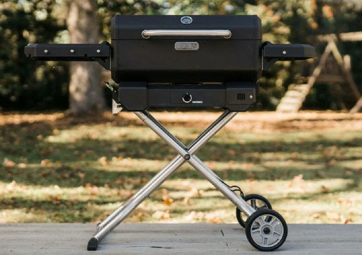 A Masterbuilt® hordozható faszenes sütő és füstölő páratlan ízélményt nyújt a grillezők szerelmeseinek, ugyanakkor a gázgrill használatának kényelmét biztosítja az utazások során. Elfelejtheted a hőmérséklet nehézkes beállítását a megfelelő hőfok eléréséhez, hiszen az egyszerűen használható SteadyTemp™ tárcsával akár 4 órán keresztül is biztosíthatod a kívánt hőmérsékletet. A sütő eltávolítható QuickCollapse™ kocsival is rendelkezik, így összecsukása gyors és egyszerű.
