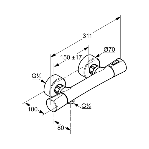 KLUDI Zenta termosztátos zuhany csaptelep, fali, zuhanycsatlakozás 1/2"