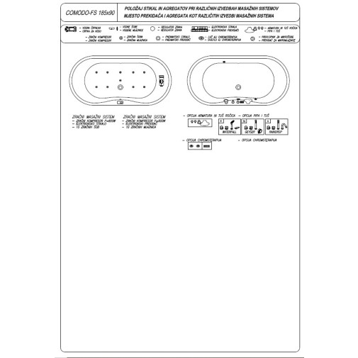 Kolpa San - COMODO-FS 185X90/MO WHITE, SZABADON ÁLLÓ FÜRDŐKÁD LEVEGŐ MASSZÁZSRENDSZERREL, LE- ÉS TÚLFOLYÓVAL, A KÁDTEST ÉS AZ ELŐLAP EGYBEÖNTVE