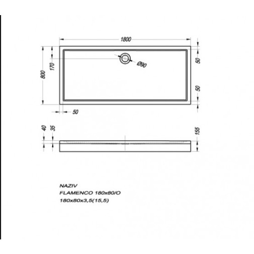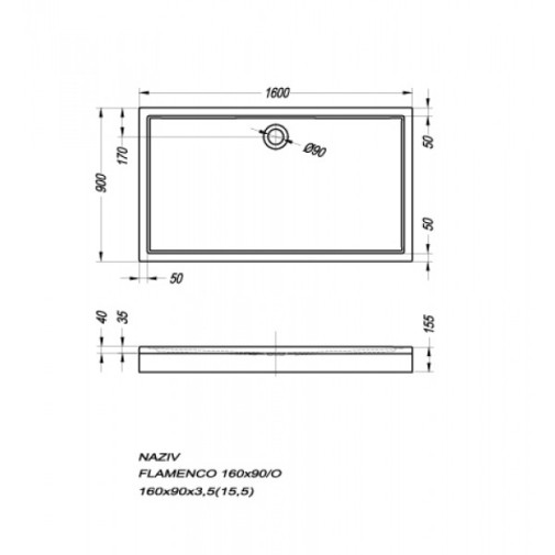 Flamenco 160x80/O akril előlapos szögletes zuhanytálca.