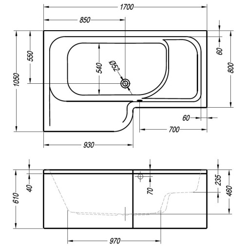 GRAZIA 170/O - D jobbos 170x80 (105) aszimmetrikus fürdőkád